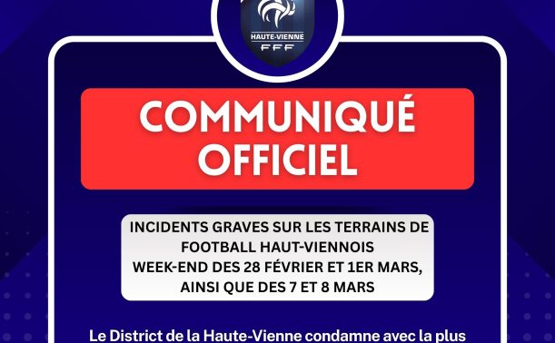 Le District de la Haute-Vienne apporte son soutien total, plein et entier aux officiels victimes de ces agissements inacceptables et réaffirme que toute atteinte à l’intégrité physique ou morale d’un arbitre constitue une ligne rouge qui ne saurait en aucun cas être franchie.